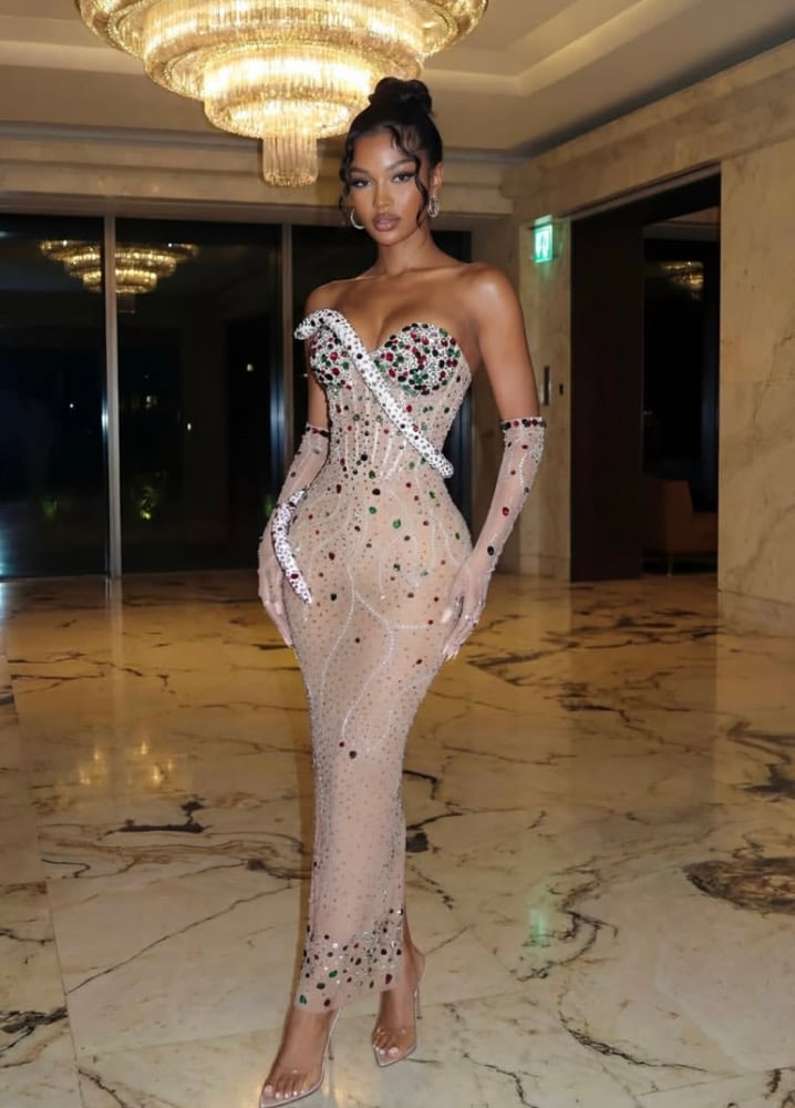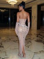 Introducing the 'Pebbles' Dress - make a statement with this stunning dress that comes with a pair of gloves for added elegance. Designed with great stretch, it offers comfort and style for any occasion. Upgrade your wardrobe and turn heads with 'Pebbles'!